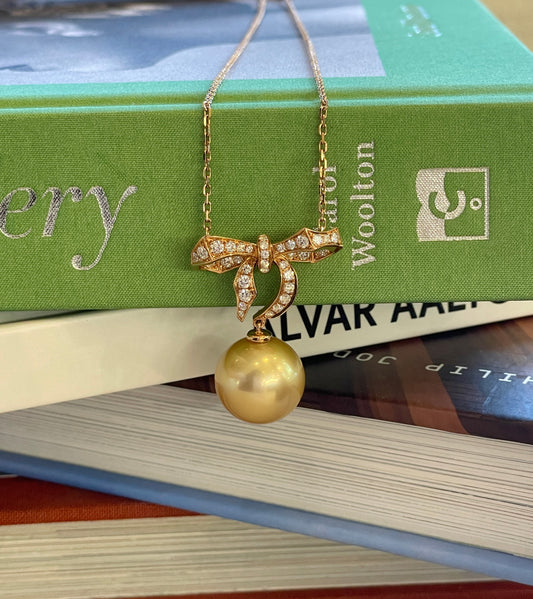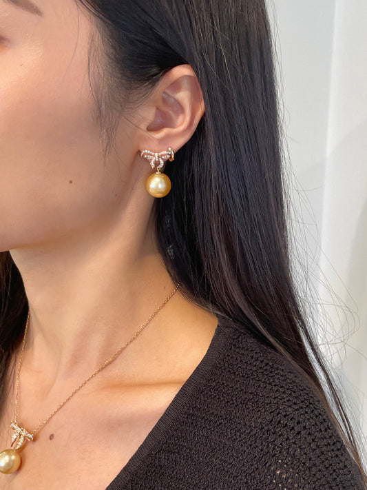 South Sea Golden Pearl Bow Tie Drop Earrings