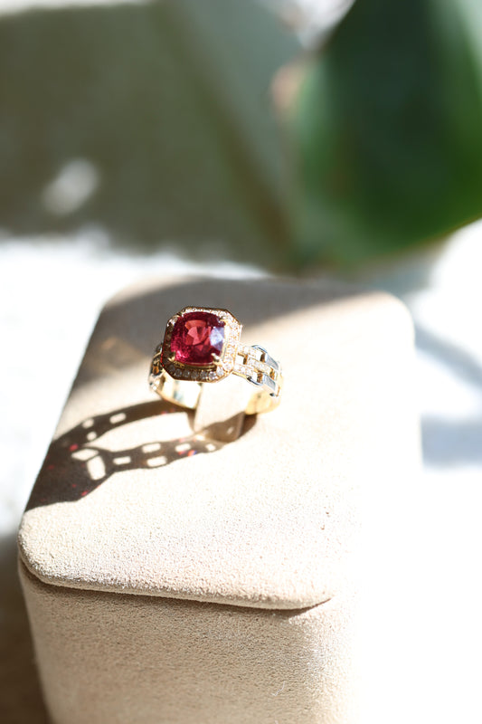 Cuba Link Band Ring-Red Spinel Diamond Halo