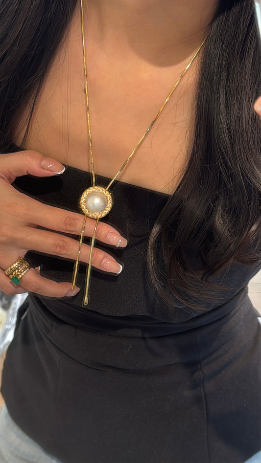 Pendentif rond en perle naturelle des mers du Sud et diamants