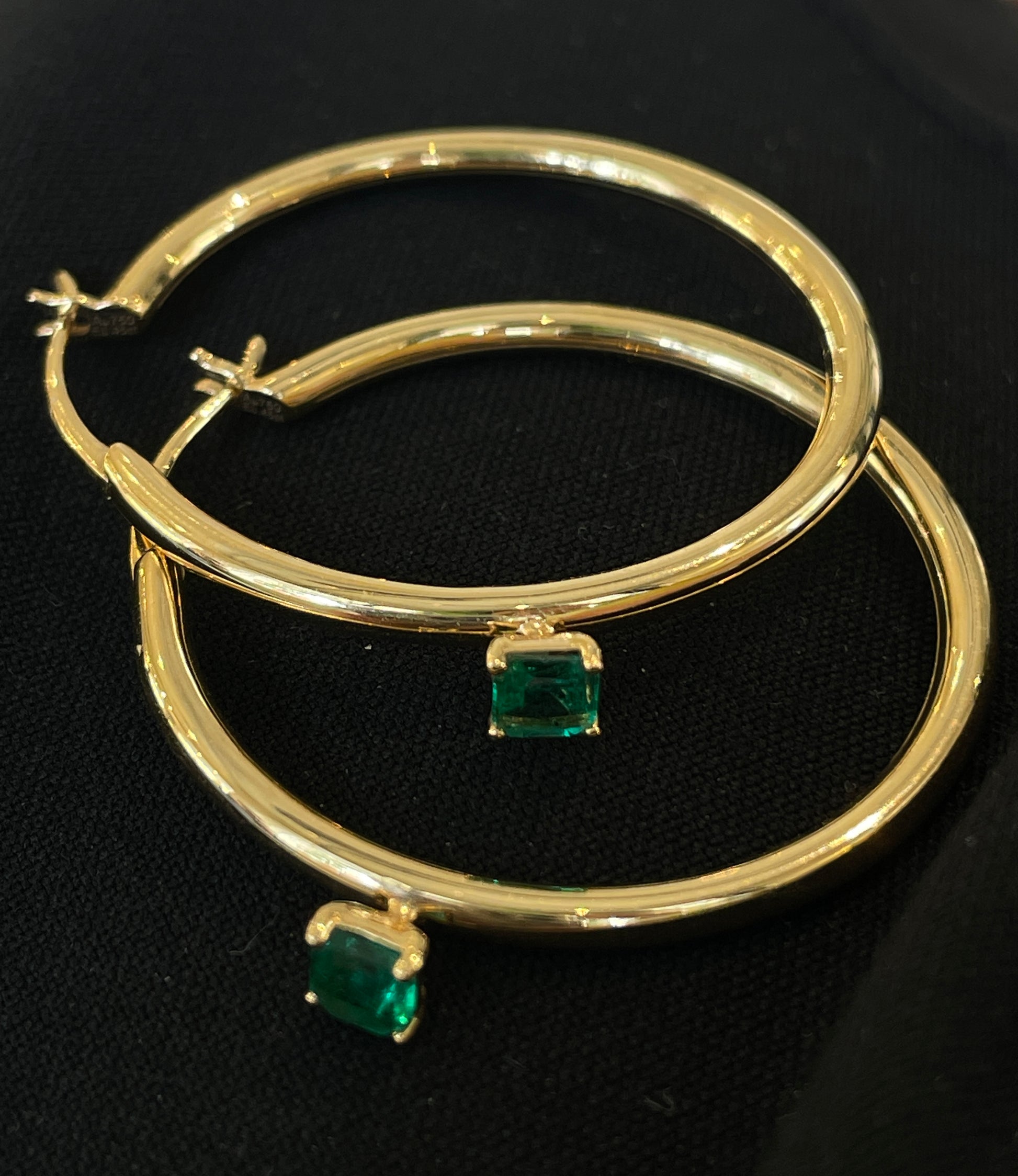 Wearing Confidence, Radiating Elegance – The Fantasilvia 18K Emerald Hoops Speak Volumes.