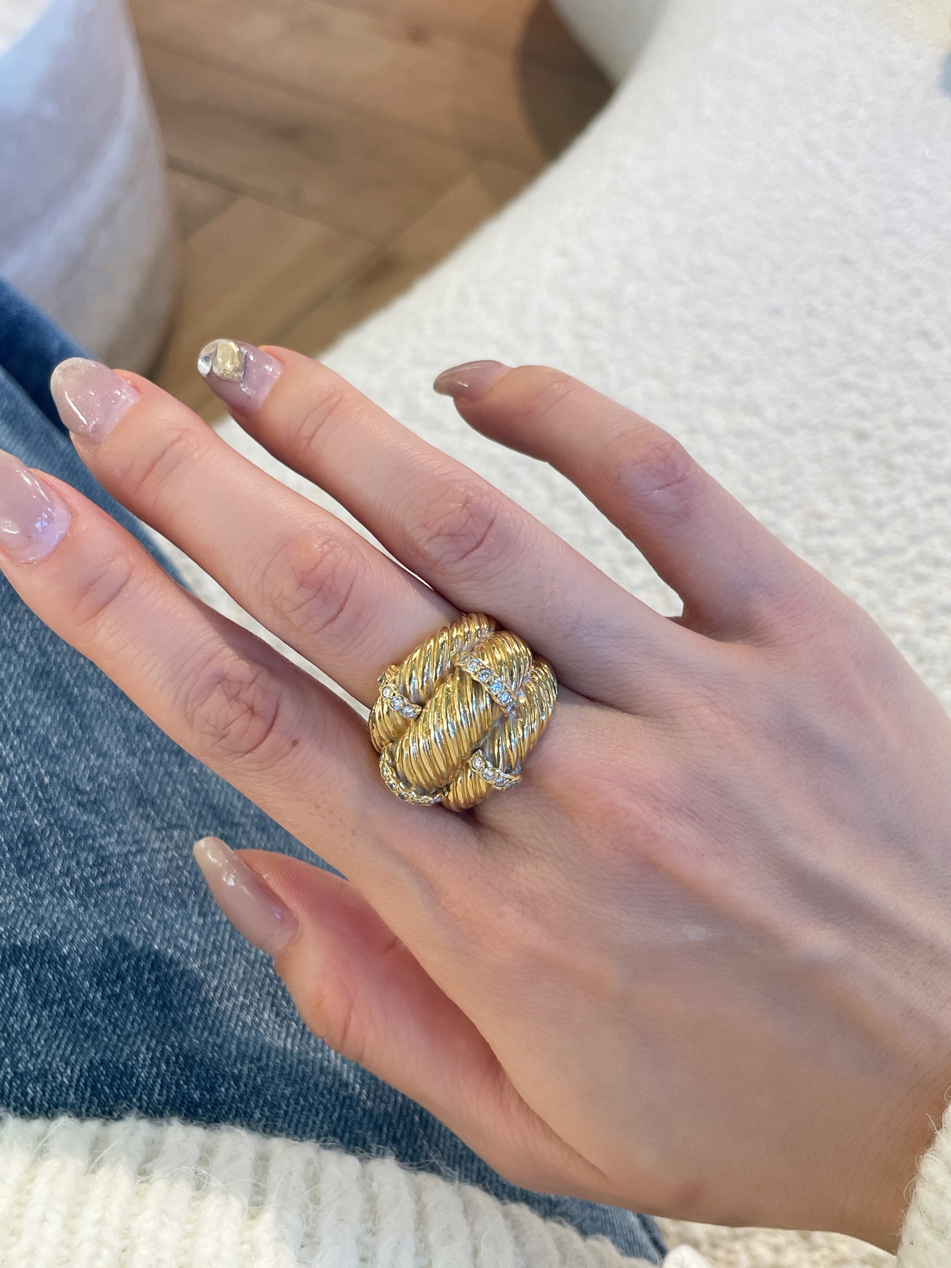 Every detail of this ring is a note in a symphony of elegance. From the carefully twisted design to the dazzling diamonds, each element harmonizes to create a piece that resonates with timeless beauty.