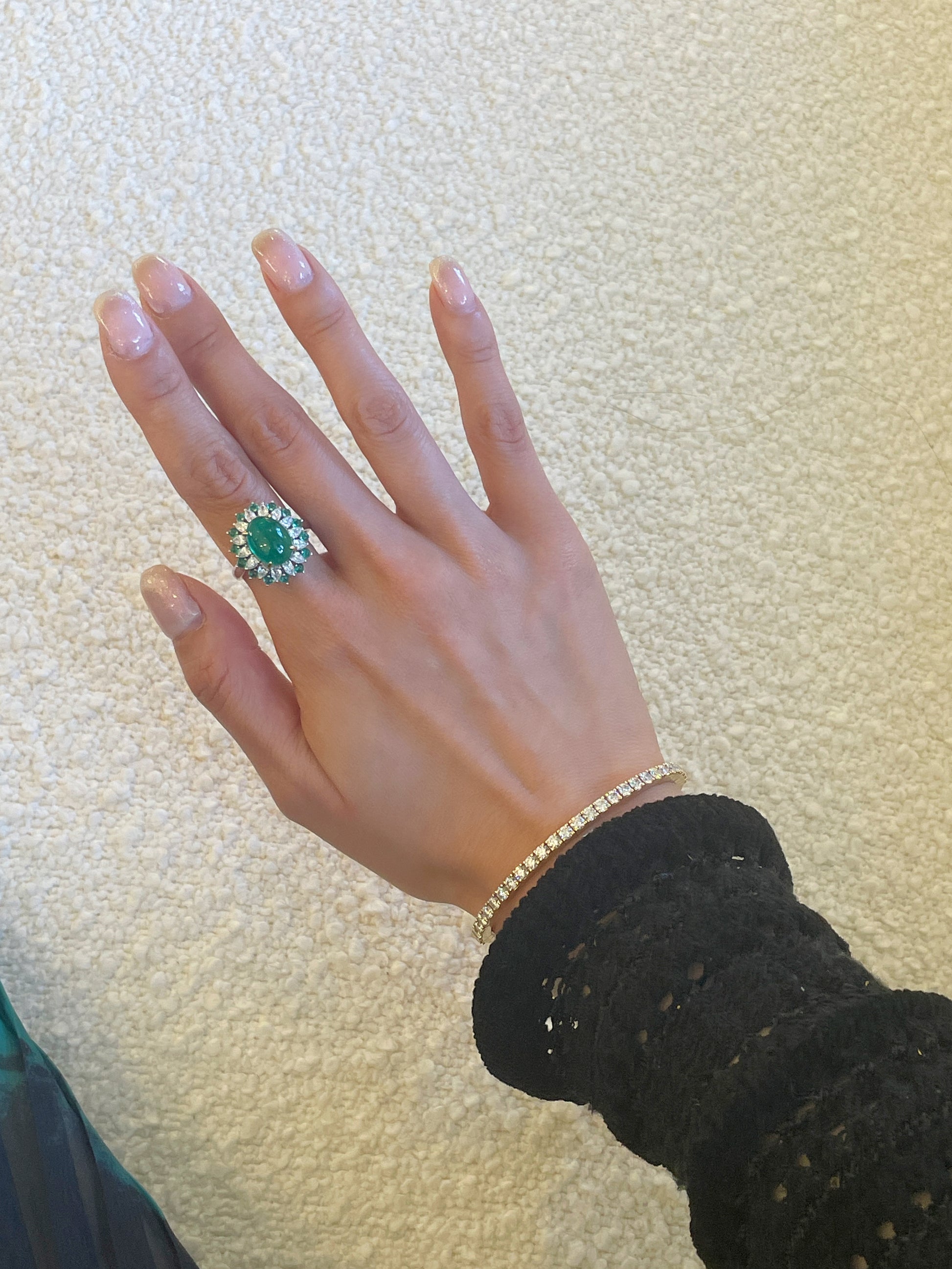 Cabochon Emerald & Pear Diamond Blossoming Ring