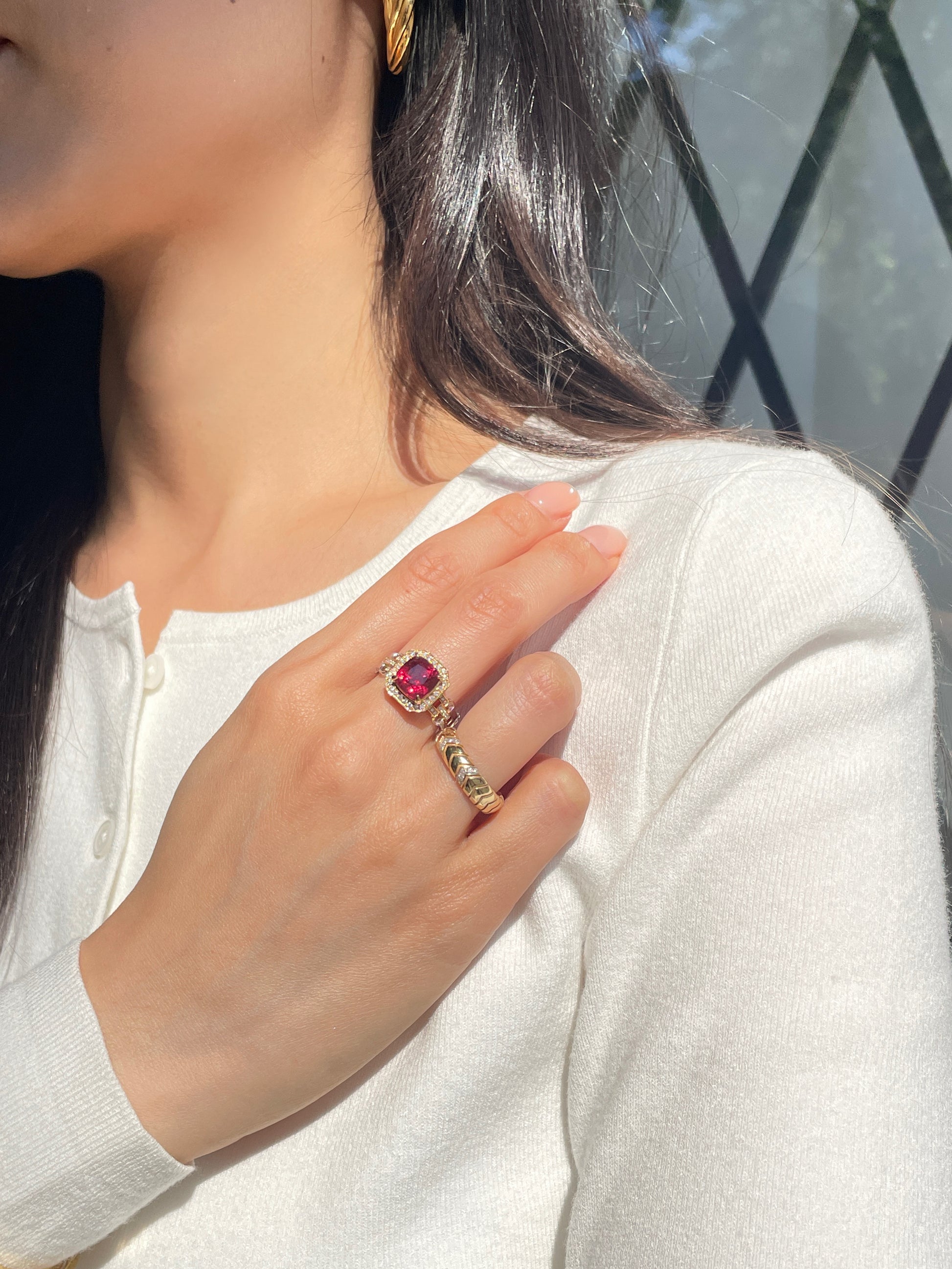 Cuba Link Band Ring-Red Spinel Diamond Halo