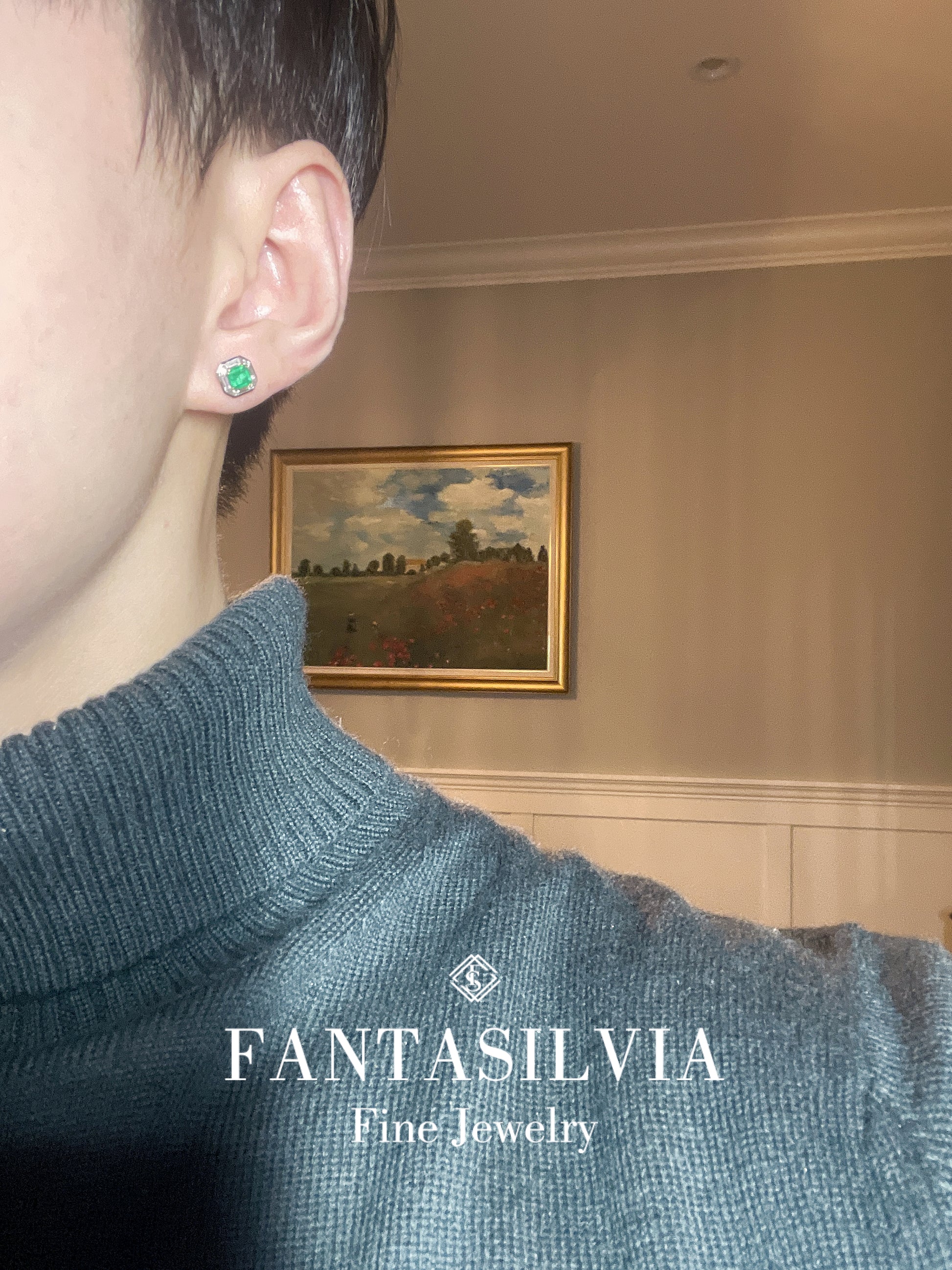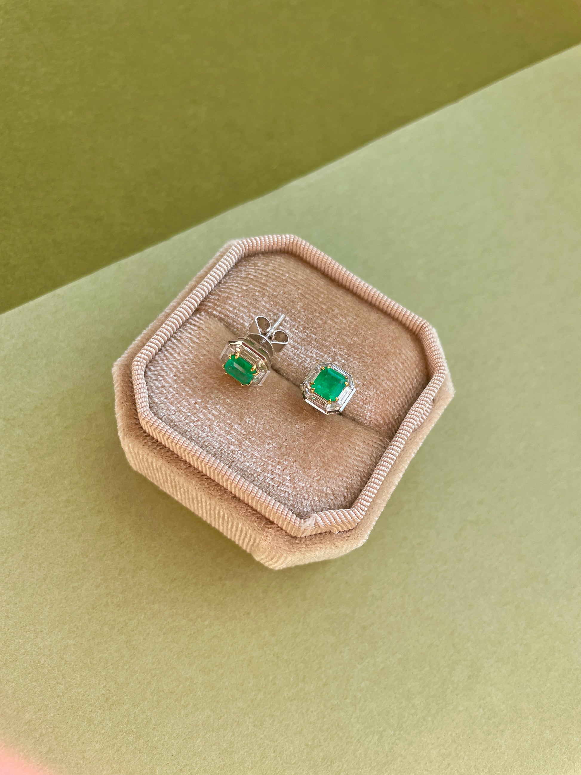 The Fantasilvia Emearld & Diamond Halo Studs.