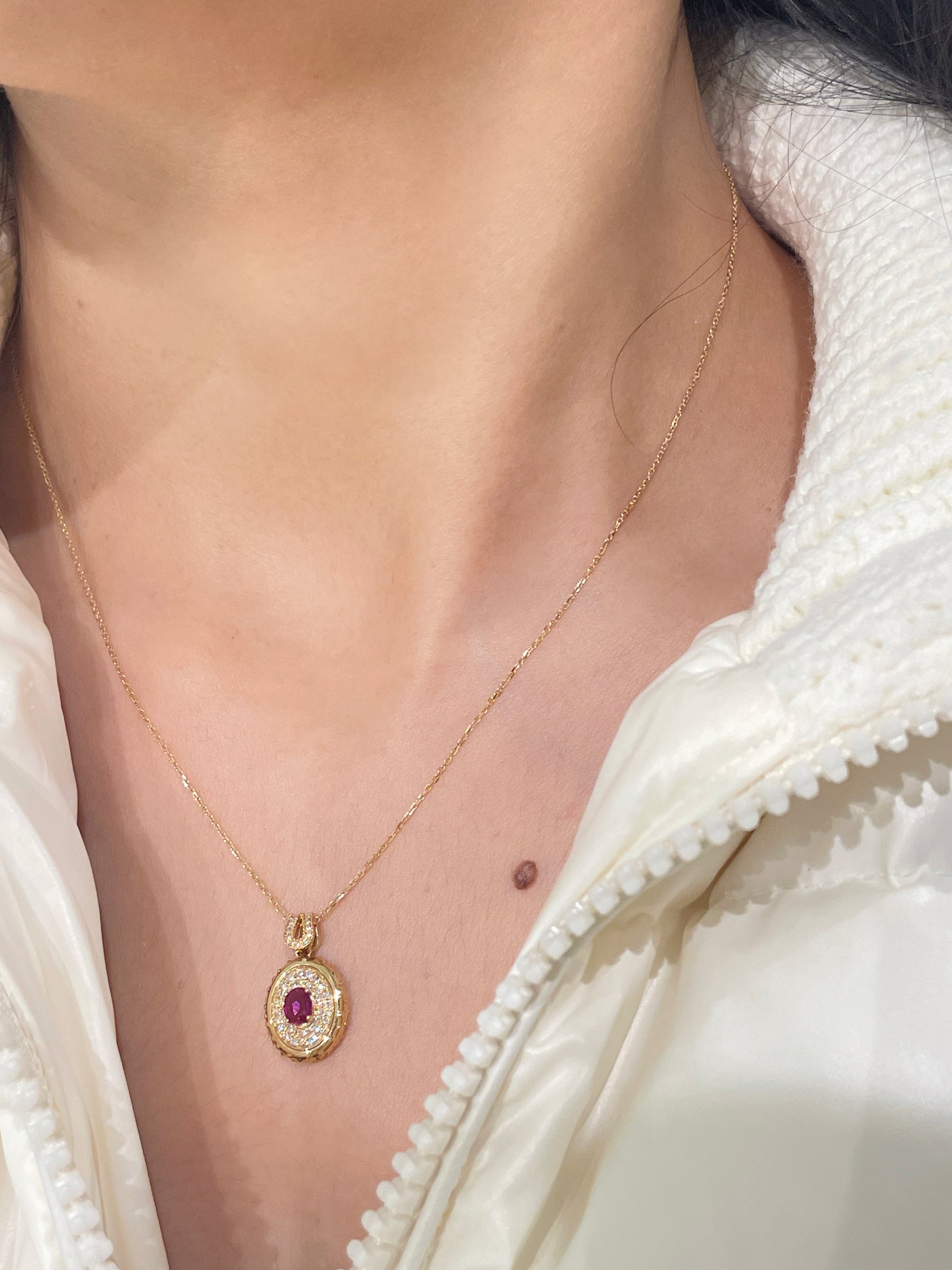 Immerse yourself in the poetic beauty of dusk with the 'Lac au Crépuscule' Natural Ruby Pendant. Drawing inspiration from sunsets over serene lakes, it weaves a wearable sonnet of elegance.