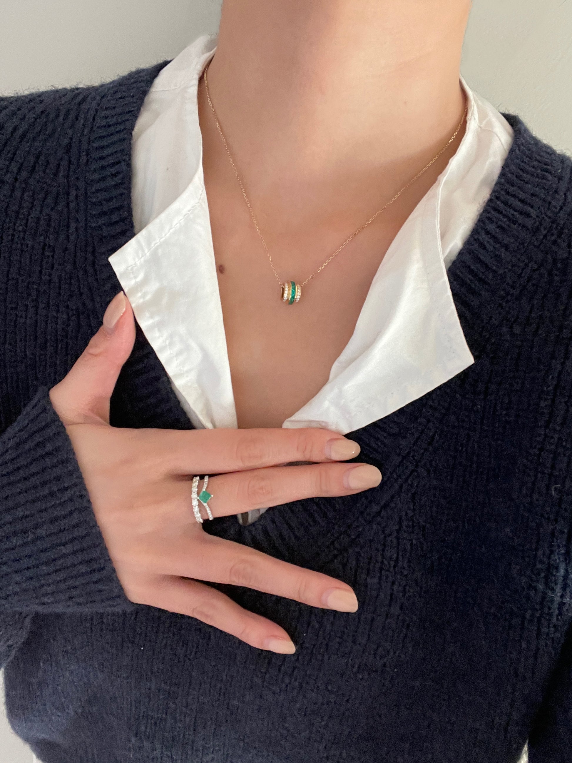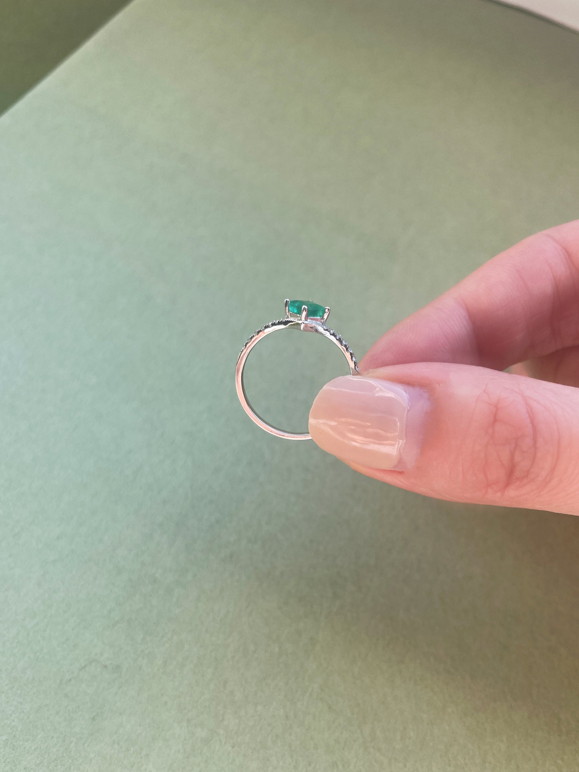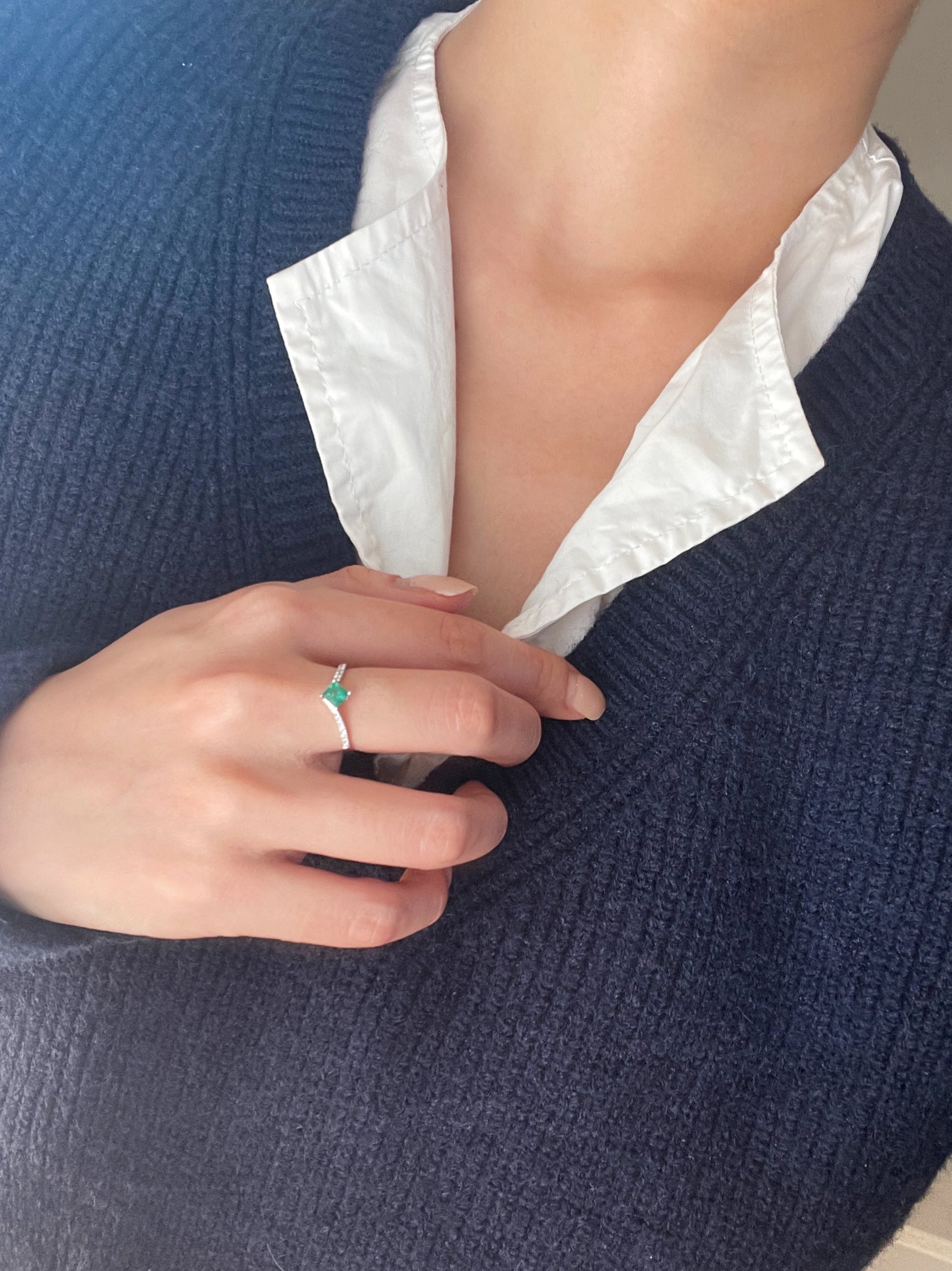 Embellished with a natural, untreated Asscher-cut emerald is the perfect addition to nest with your engagement ring. Handcrafted in your choice of 18K gold colors. Stack it up with the Round Diamond Half Eternity Ring!