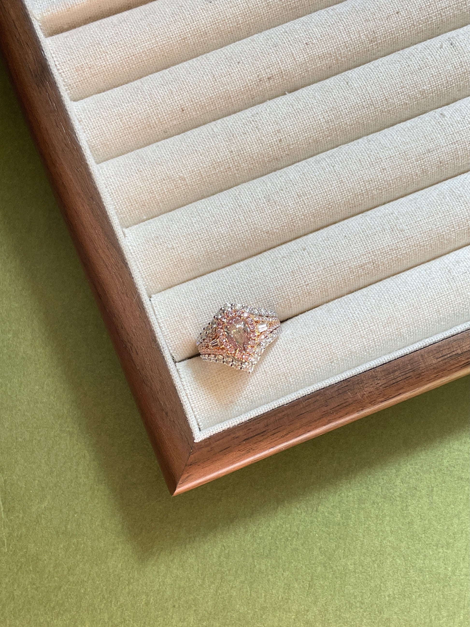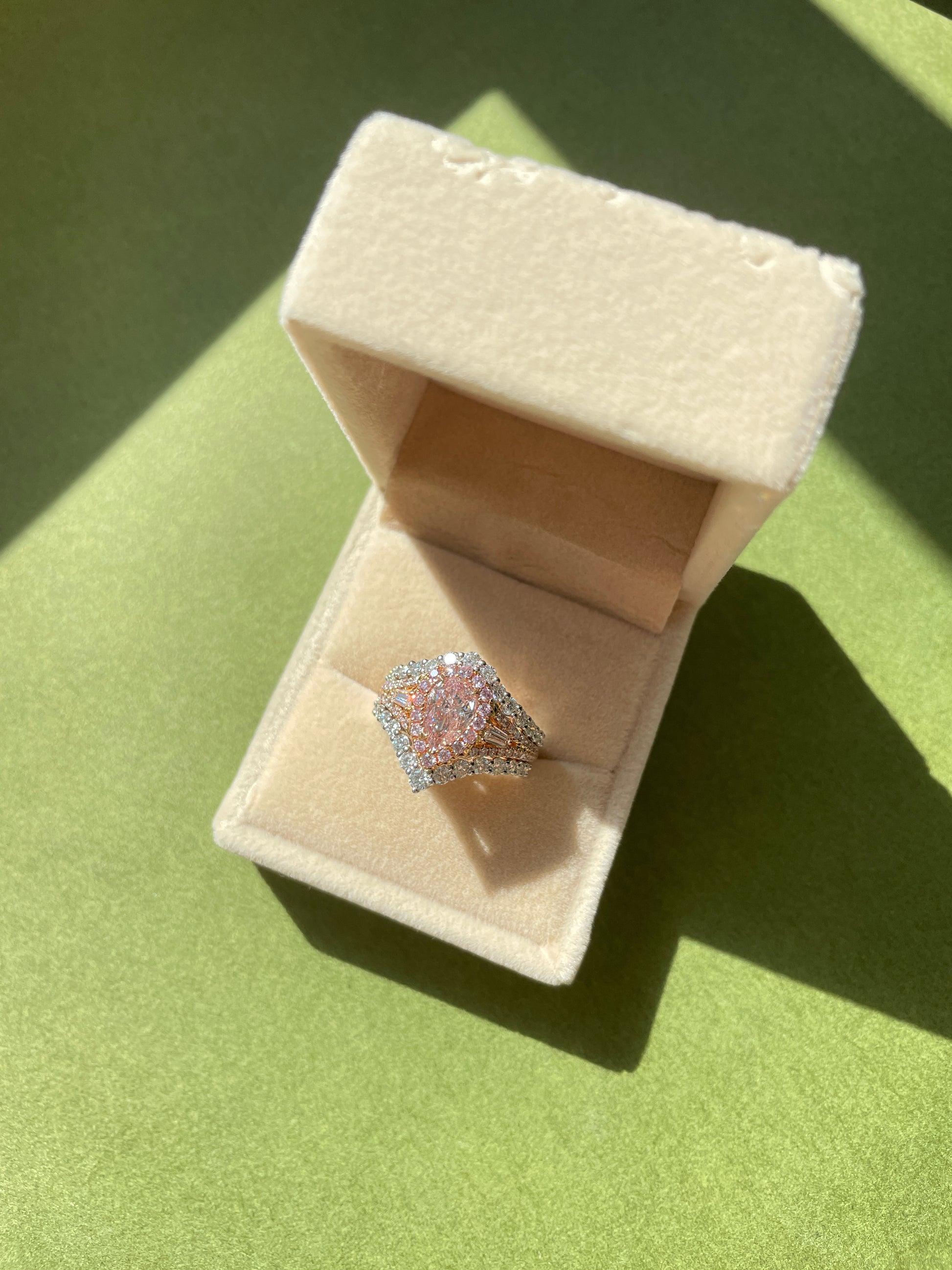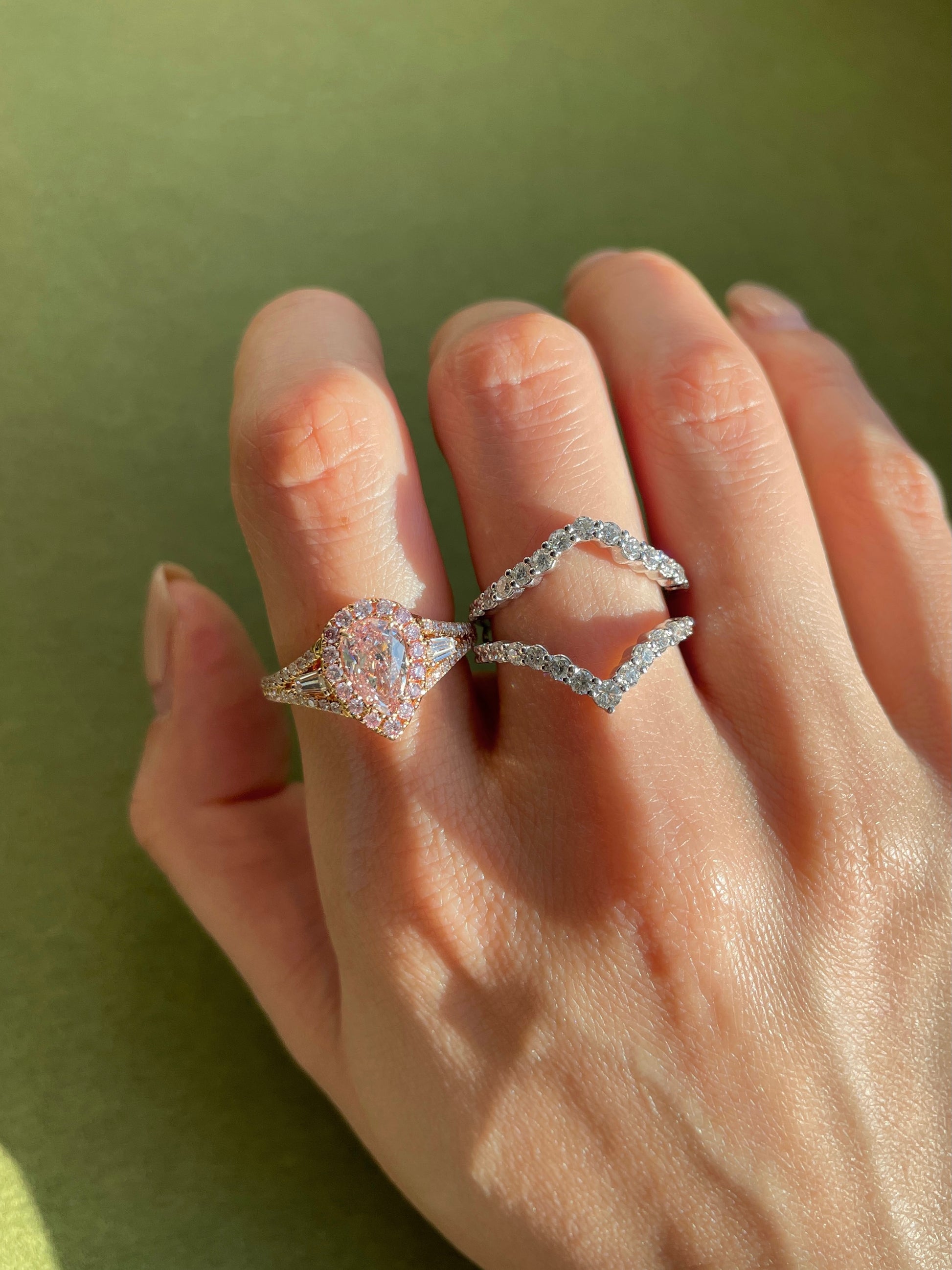 Pink Diamond Halo Ring Stacking Double Chevron Diamond Band