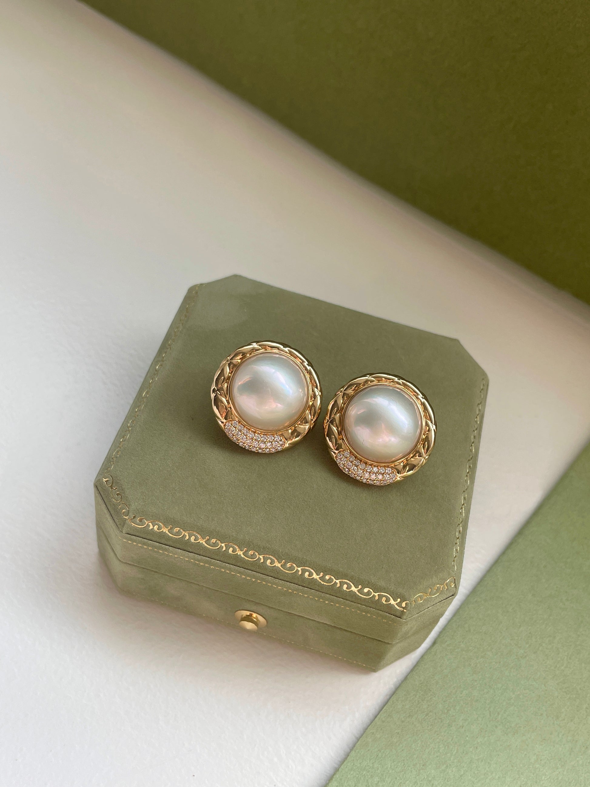 Saltwater Mabe Pearl & Diamond Earrings