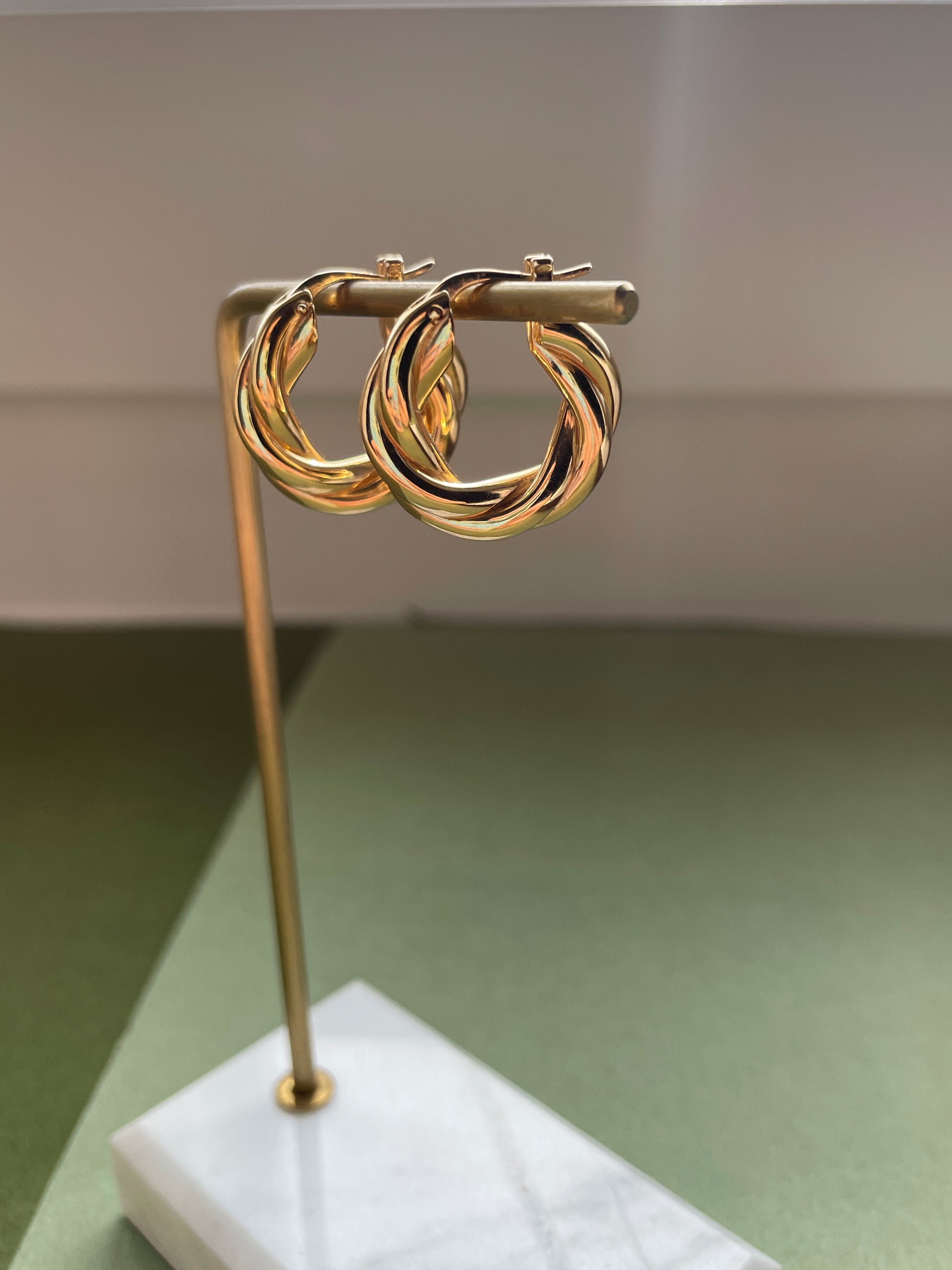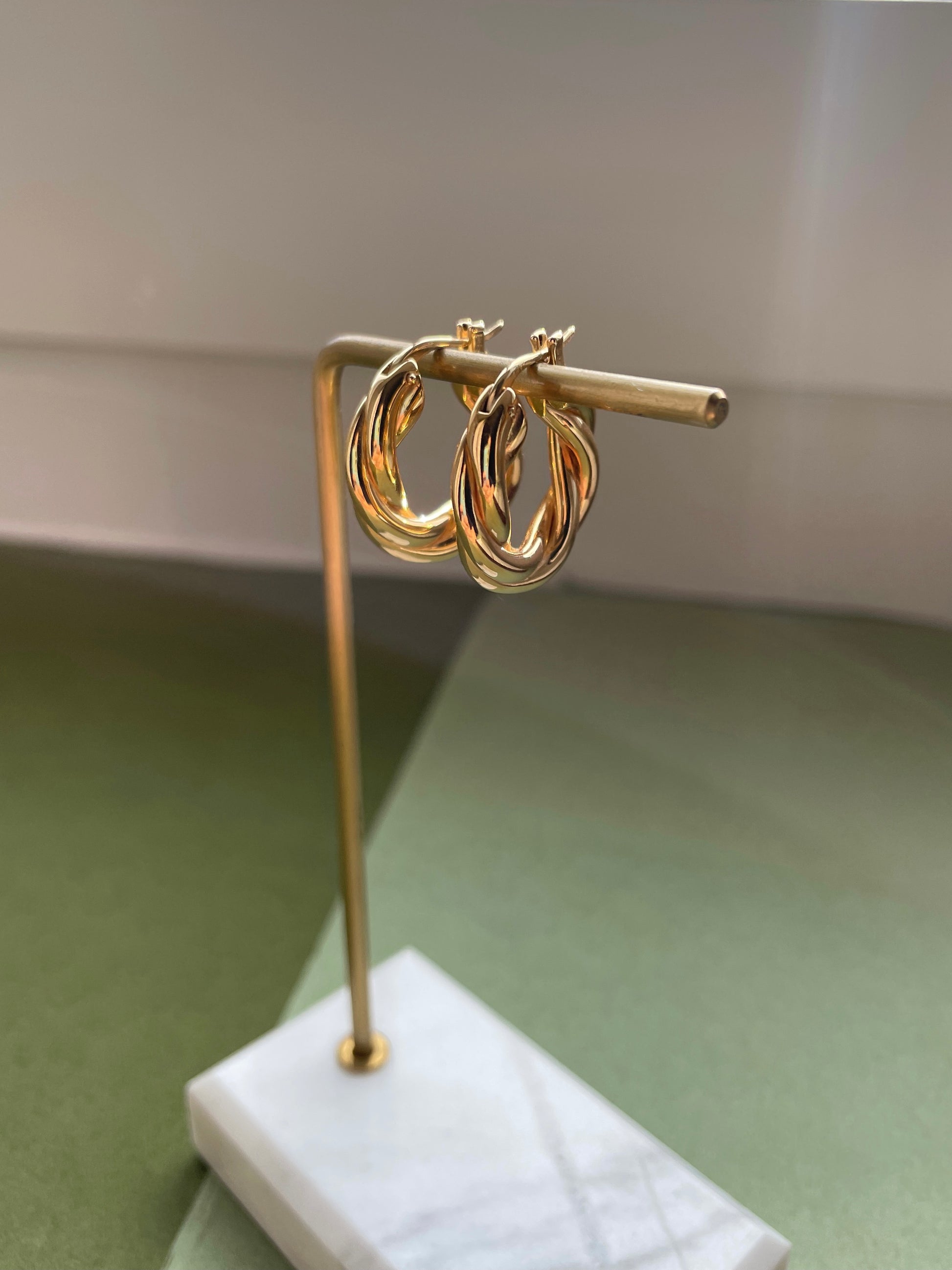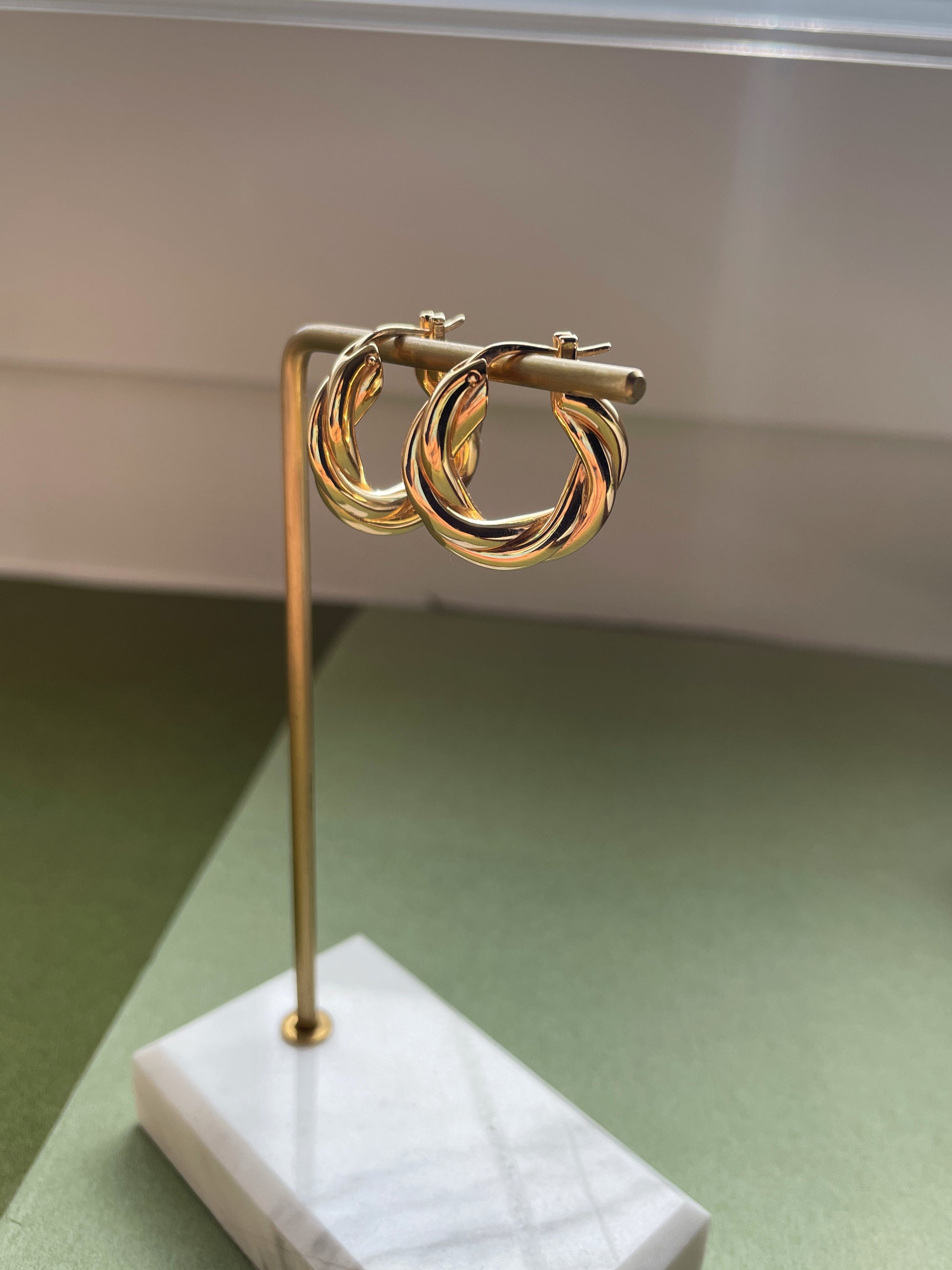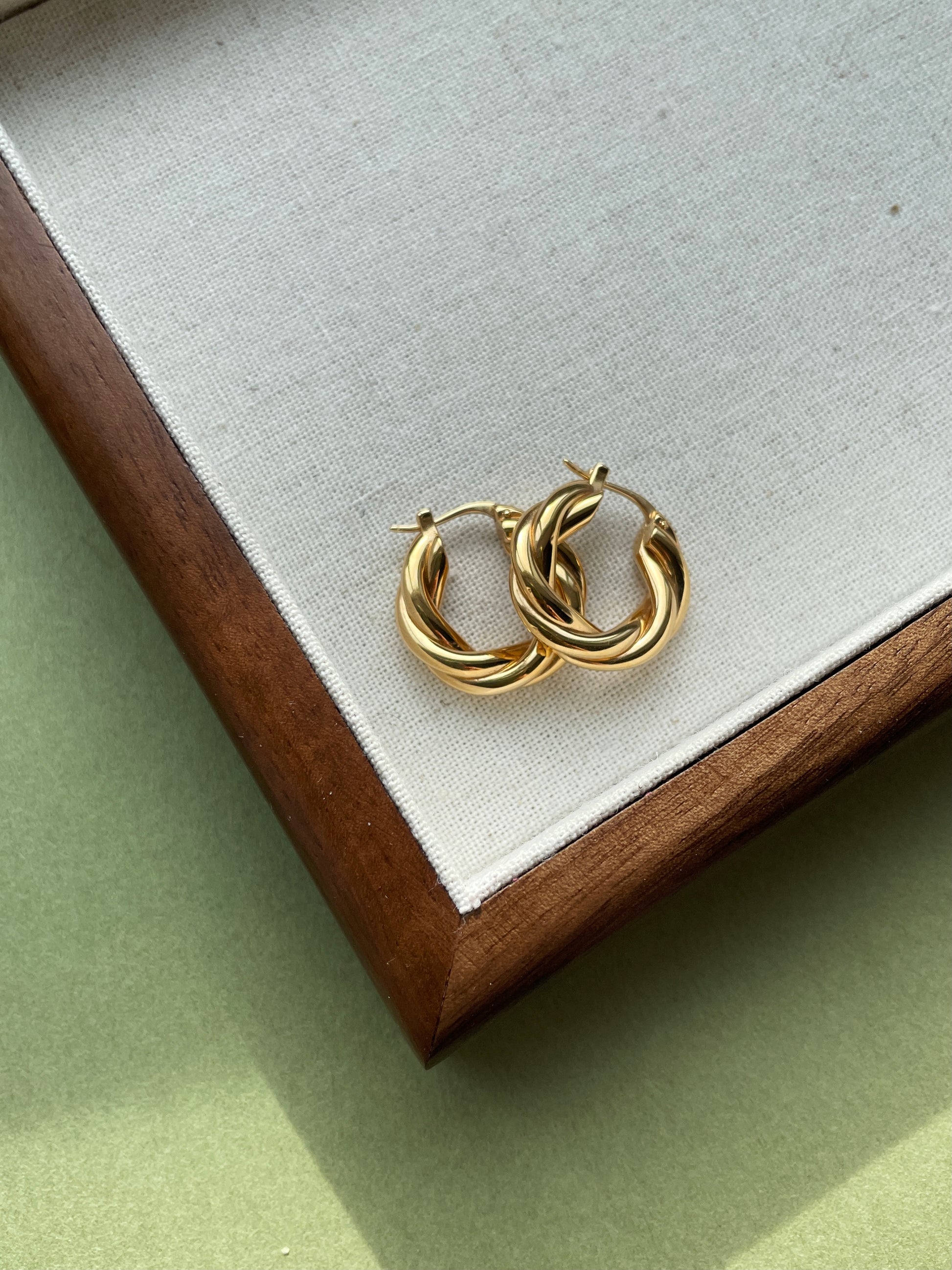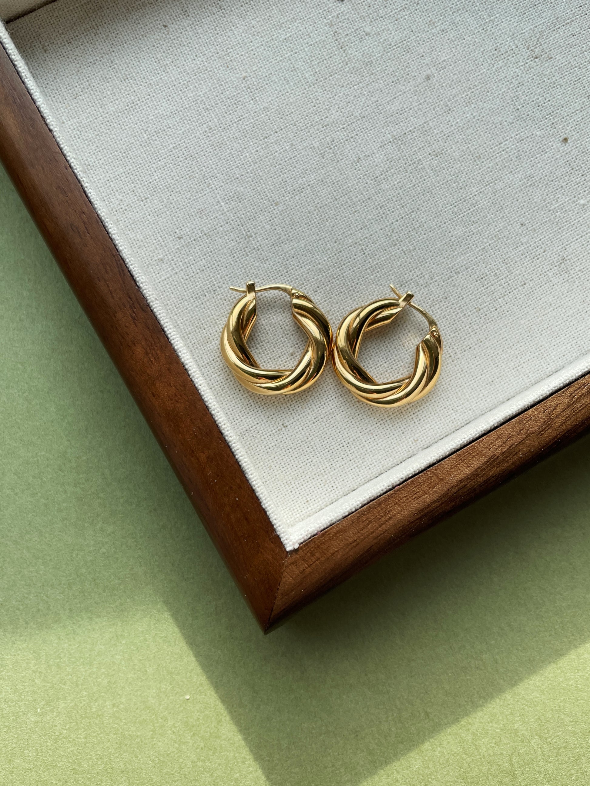 The Fantasilvia 18K gold Iwamura Castle Twisted Huggies are sophisticated and charming. The design inspiration is from the paths winds up to the Iwamura Castle located in the southeastern area of Mino Province in Japan.