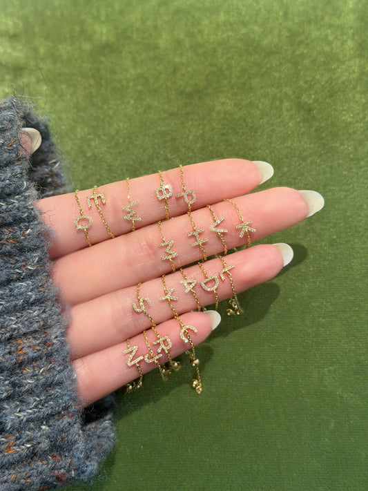 18K pavé Initial Chain Ring